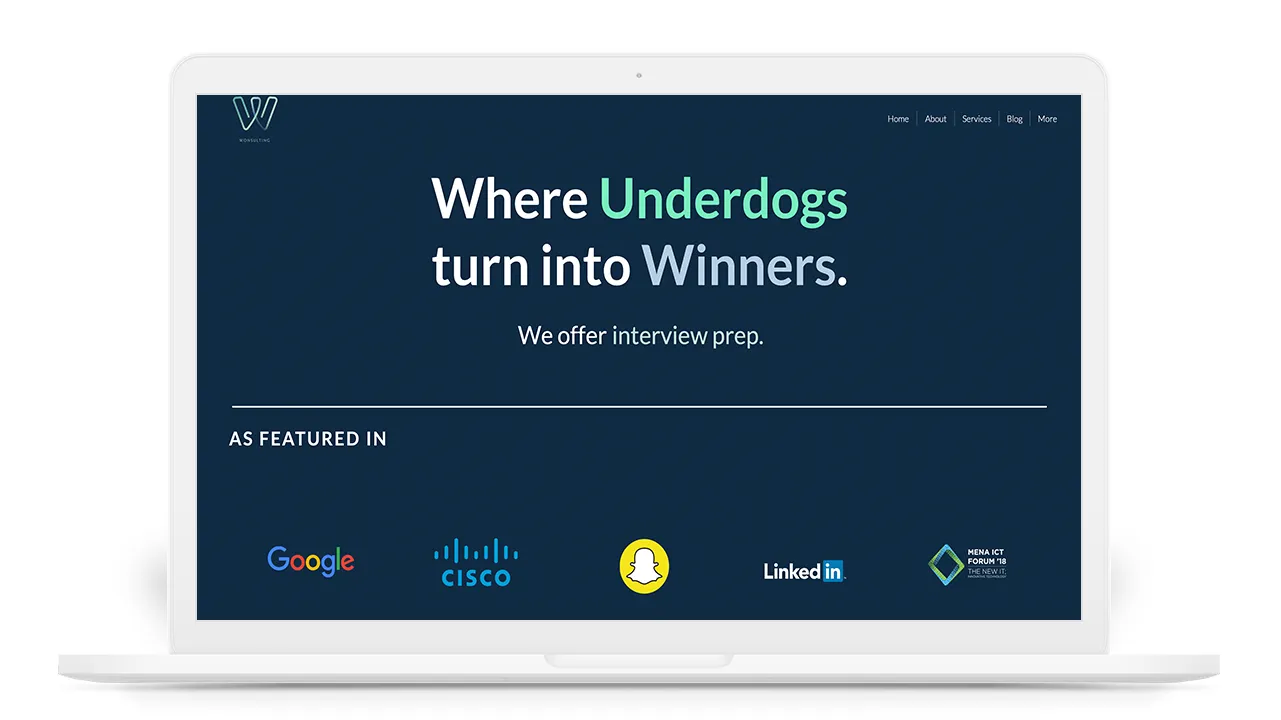 Wonsulting helps minority individuals and students get into their dream careers. I overhauled their brand identity with a brand new logo, and revamped their website from scratch.